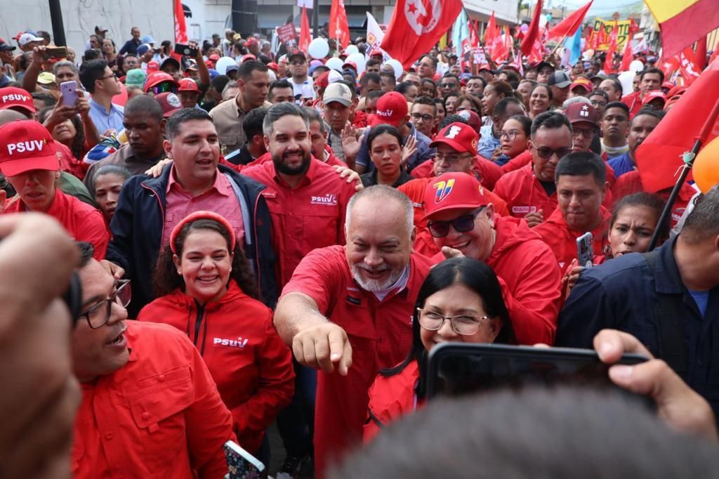 La movilización que desbordó de amor, alegría y pasión Patria, estuvo encabezada por el primer vicepresidente del Partido Socialista Unido de Venezuela (PSUV), Diosdado Cabello, quien destacó que el Pueblo organizado y los líderes de base son la mayor fortaleza contra las agresiones del imperialismo y sus lacayos.
