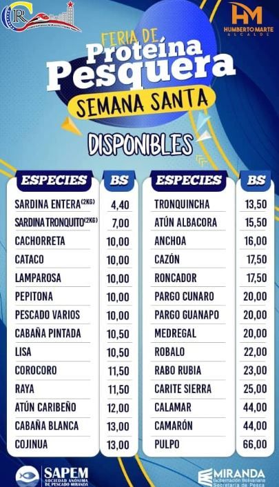 De acuerdo con la información publicada en la cuenta oficial de Facebook de la Alcaldía la actividad se realizará a través la Secretaría de Pesca del estado Miranda y de la Sociedad Anónima de Pescado de la entidad (SAPEM).