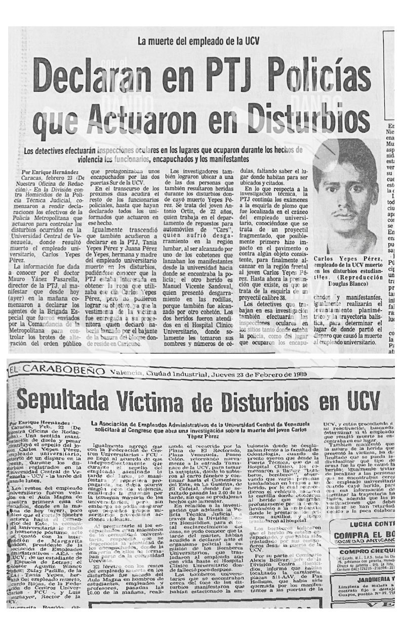 (Últimas Noticias y El Nacional, 21 y 23 de febrero 1989)