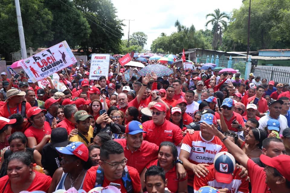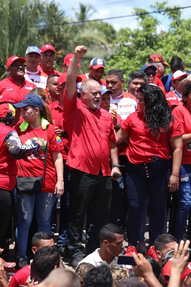 El primer vicepresidente del Partido Socialista Unido de Venezuela (PSUV), Diosdado Cabello, recorrió junto al Pueblo cojedeño las calles del municipio Rómulo Gallegos para brindar su apoyo irrestricto al presidente de la república Nicolás Maduro y exigir al gobierno de los Estados Unidos el cese del bloqueo.
