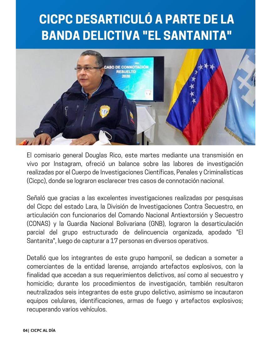 Este domingo 2 de agostos el Cuerpo de Investigaciones Científicas, Penales y Criminalísticas (Cicpc) invitó a compartir su Boletín informativo N° 77, el cual demuestra el empeño de la institución por un país más seguro, en medio de las actuales circunstancias.