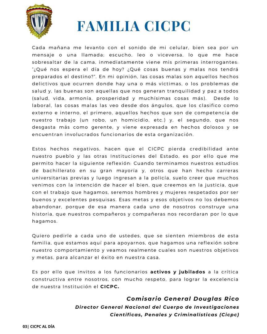 El Comisario General, Director General Nacional del Cuerpo de Investigaciones Cientícas Penales y Criminalística (Cicpc) Douglas Rico en la edición 76 de la publicación Cicpc Al Día realizó una reflexión sobre la importancia que los funcionarios de este cuerpo policial asuman el compromiso con la justicia.