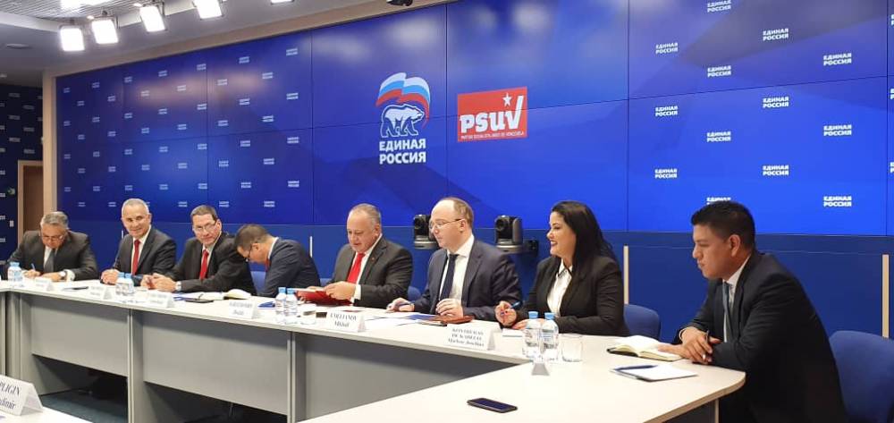 Este jueves 17 de octubre el primer Vicepresidente del Partido Socialista Unido de Venezuela, Diosdado Cabello, sostuvo un encuentro con la Comisión de Presidio del Consejo General Para las Relaciones Internacionales del partido Rusia Unida, encabezada por su presidente Andrei Klimov.