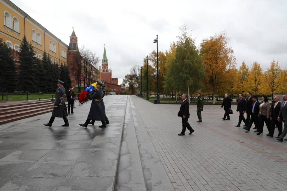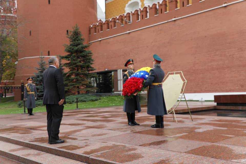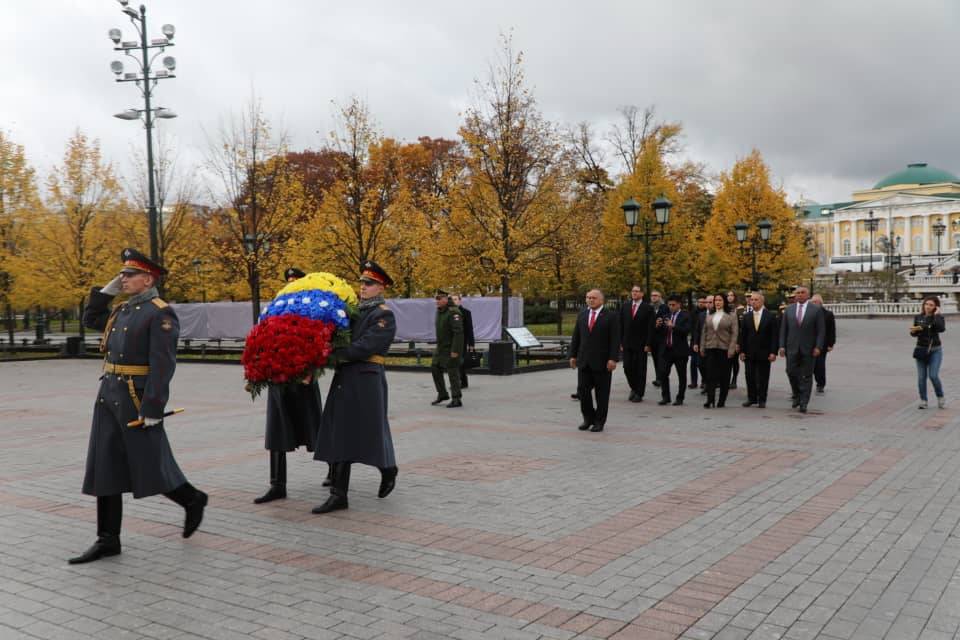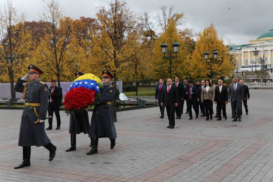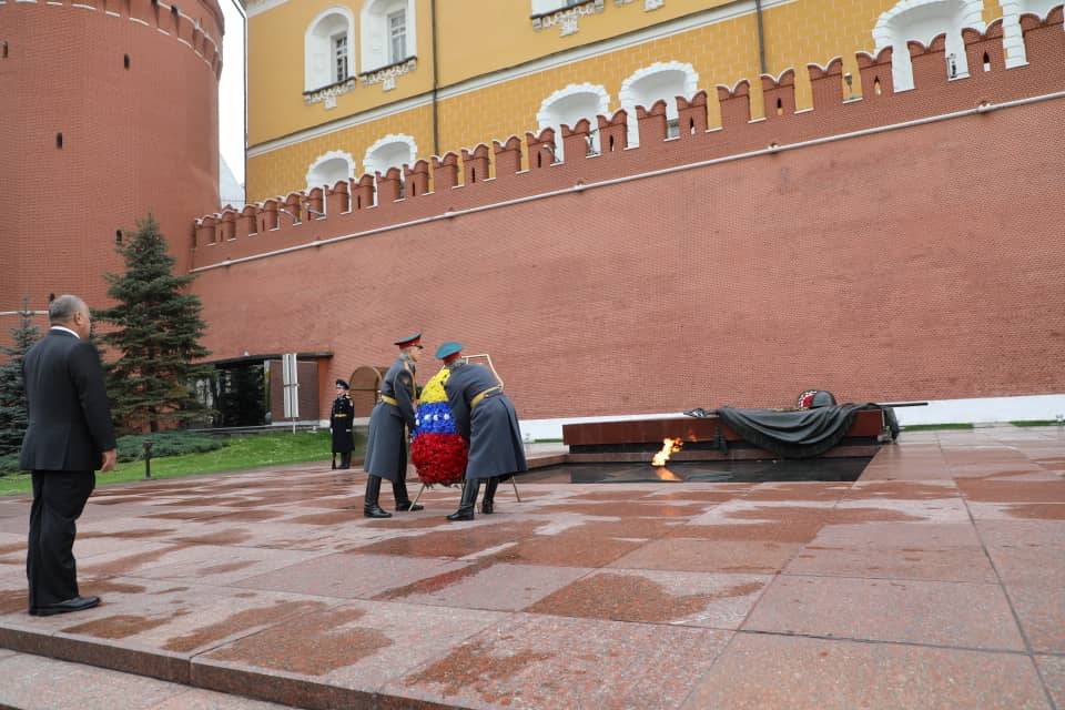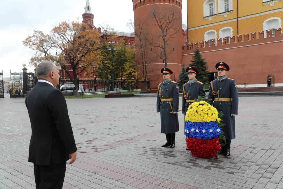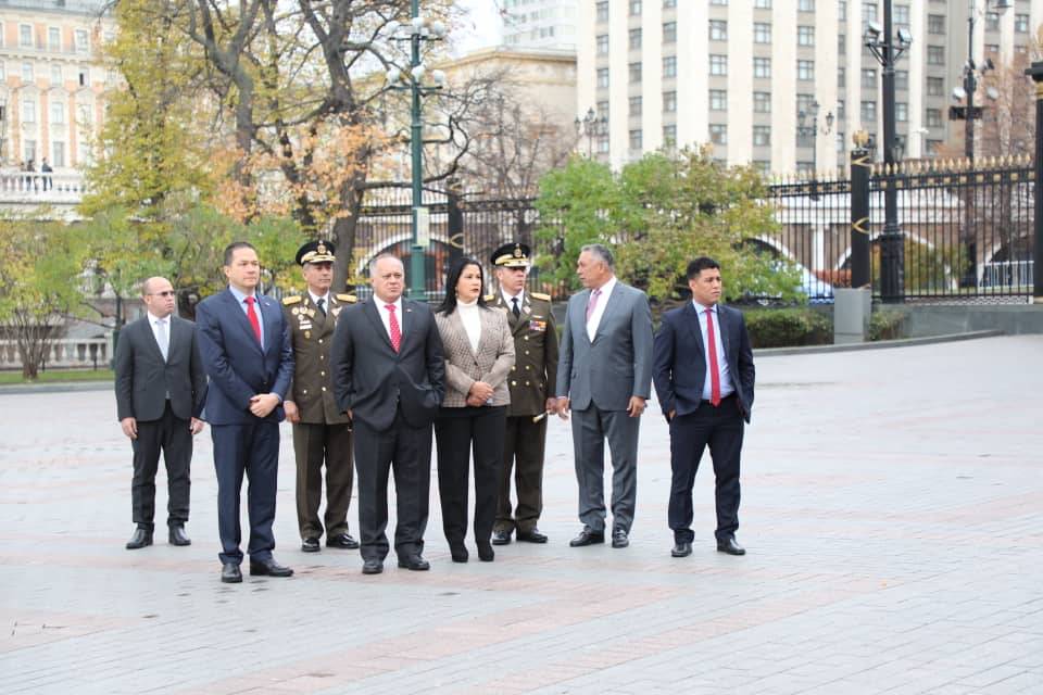 La delegación venezolana de alto nivel que se encuentra de visita en Rusia, encabezada por el primer vicepresidente del Partido Socialista Unido de Venezuela (Psuv), Diosdado Cabello, realizó este viernes una ofrenda floral en la Tumba del Soldado Desconocido, monumento dedicado a los soldados soviéticos caídos en la Gran Guerra Patria, ubicado en el Jardín Alexander frente al muro del Kremlin en Moscú.
