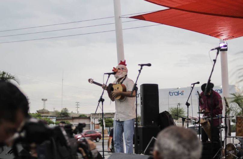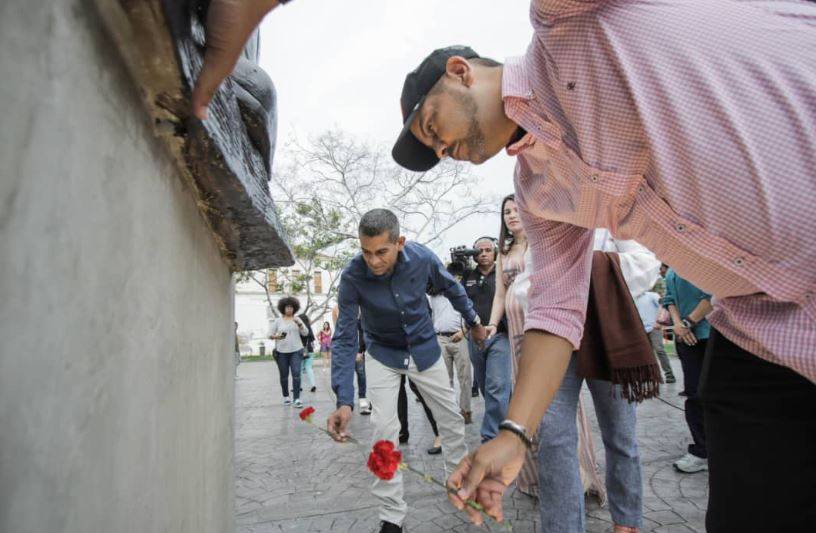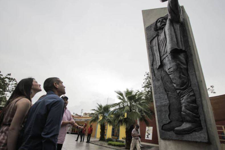 y una escultura de ocho metros de altura del cantor del pueblo, Alí Primera.