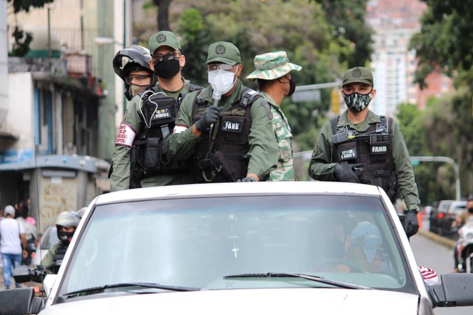 Efectivos de la Guardia Nacional Bolivariana, se desplegaron por las calles de Caracas, en un jornada de perifoneo y charlas a los habitantes de la capital sobre la importancia de cumplir con las normas para evitar el contagio y propagación del Covid-19.