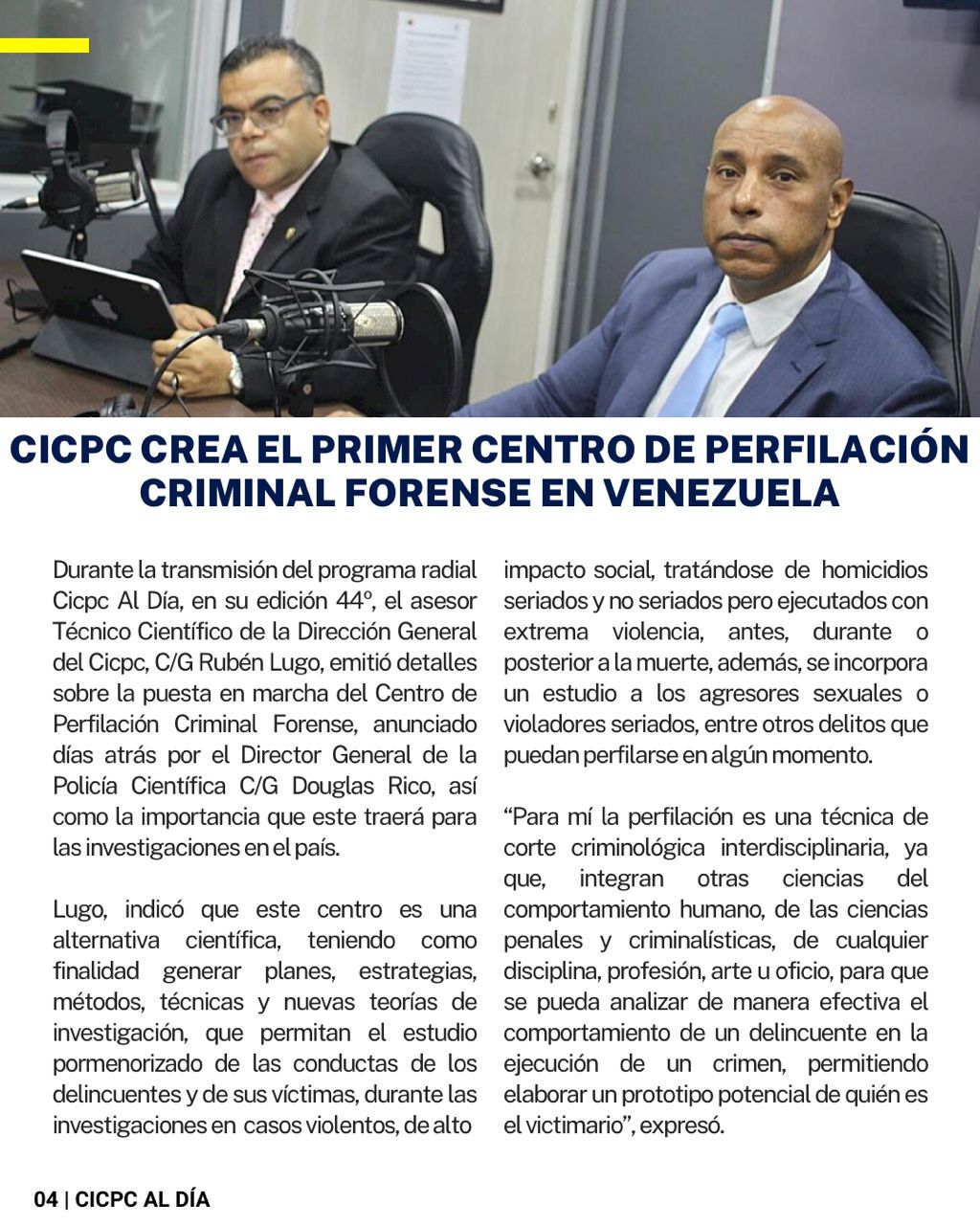 Además, ofrece detalles de la reunión de trabajo que sostuvieron con las Divisiones Municipales de Criminalísticas del Distrito Capital; y de lo que fue la creación del primer Centro de Perfilación Criminal Forense de Venezuela.