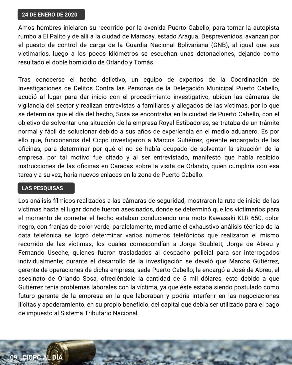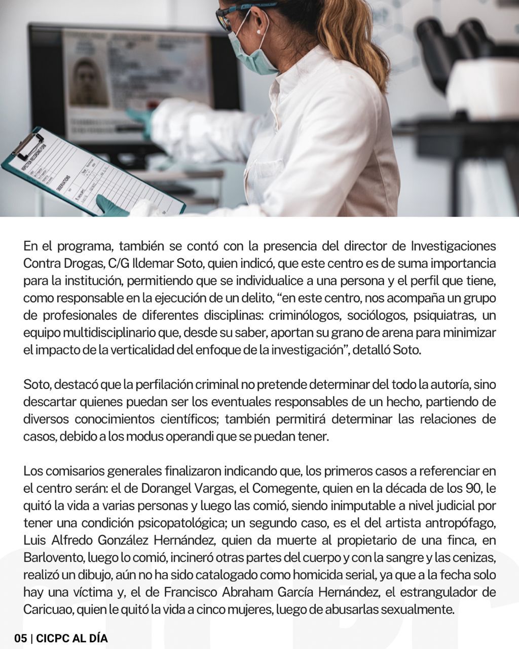 Este domingo, 7 de julio, el Cuerpo de Investigaciones Científicas, Penales y Criminalísticas (CICPC) difundió la edición N° 170 de su Boletín CICPC Al Día, con el próposito de mostrar el trabajo que realiza la polícia científica en el país.