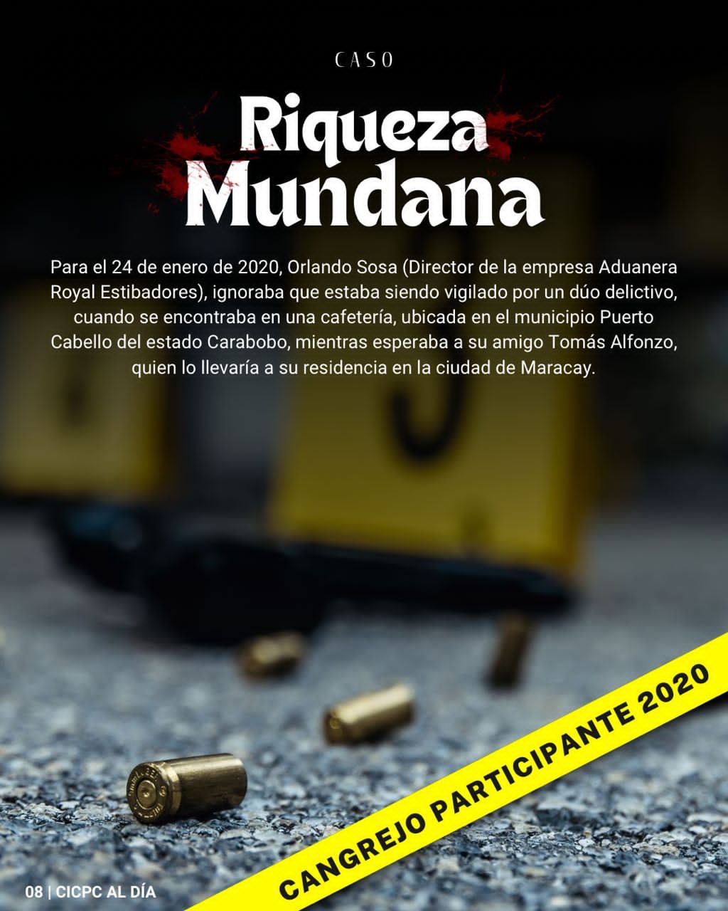 En esta edición, la cual llaman a leer y compartir, el CICPC invita a conocer al Comisario General Dámaso Amaya y el caso que se llevó el Cangrejo Participante 2020: Riqueza Mundana.