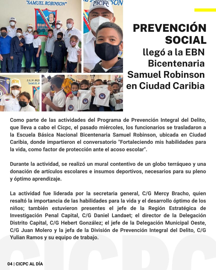 El Cuerpo de Investigaciones Científicas, Penales y Criminalísticas (CICPC) presentó, este domingo 15 de mayo, el número 163 de su revista CICPC Al Día, en el que busca dar a conocer parte del trabajo que desarrolla esta institución.