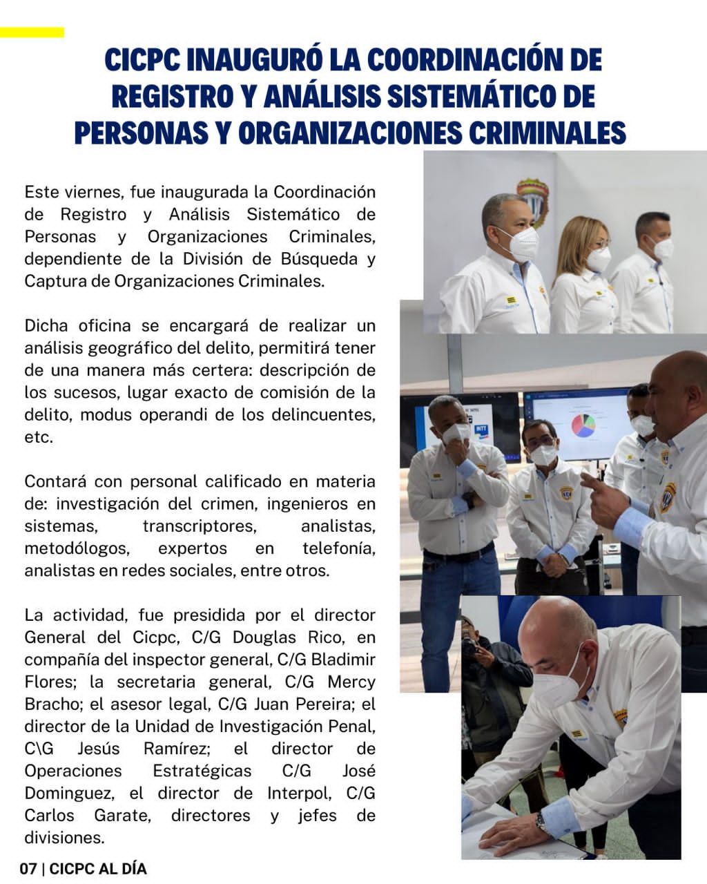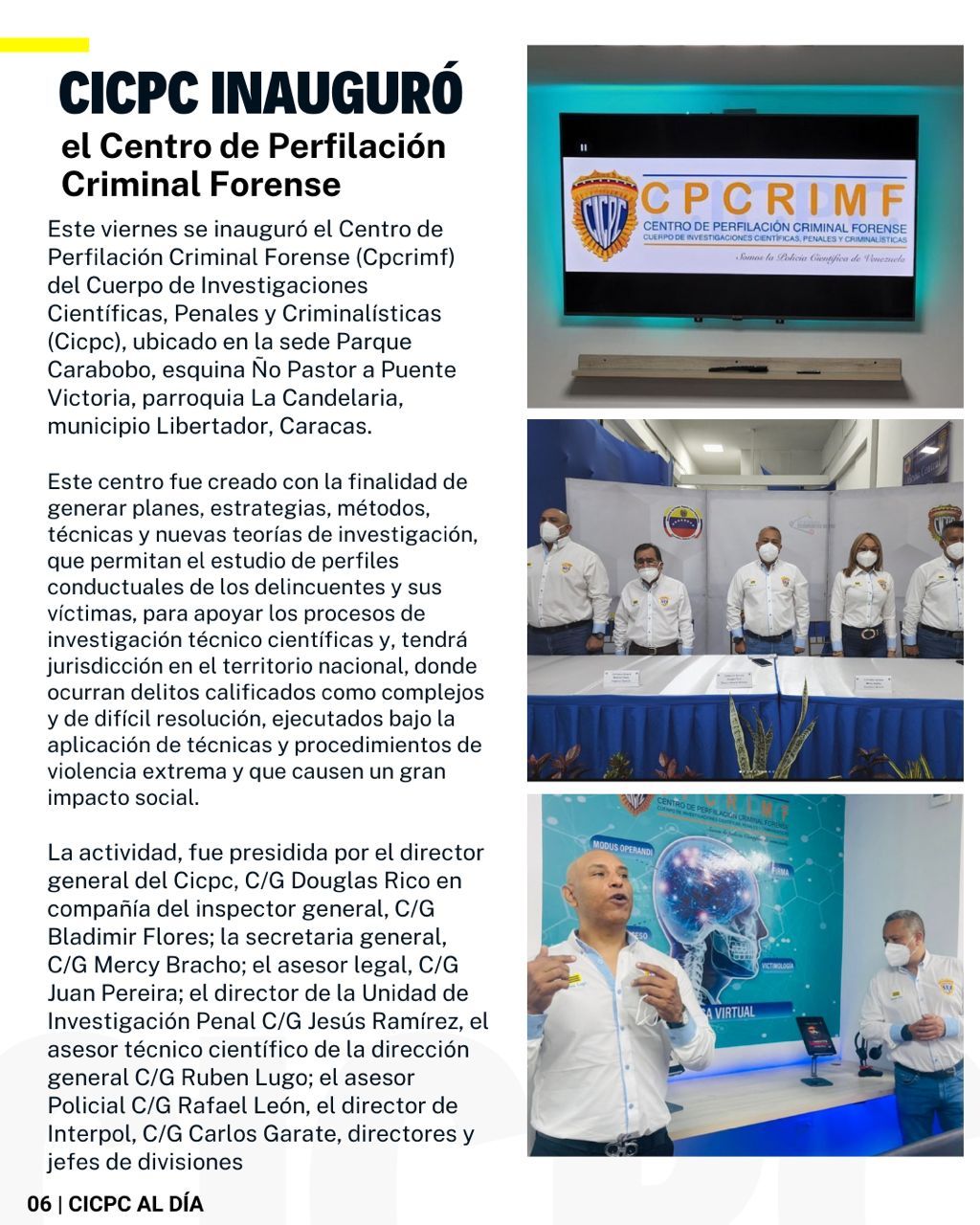 Con el objetivo de difundir el trabajo realizado por efectivos del Cuerpo de Investigaciones Científicas Penales y Criminalísticas (CICPC) se publicó la edición N°176 de la revista informativa de la institución.