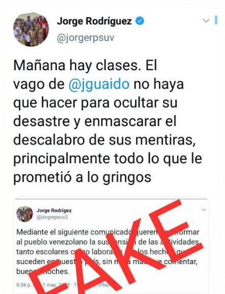 Estas declaraciones fueron emitidas por el también presidente de la Asamblea Nacional Constituyente (ANC) tras la publicación y viralización de un falso tuit en el que el vicepresidente sectorial para la comunicación, Jorge Rodríguez, informó que las actividades escolares y laborales quedaban suspendidas.