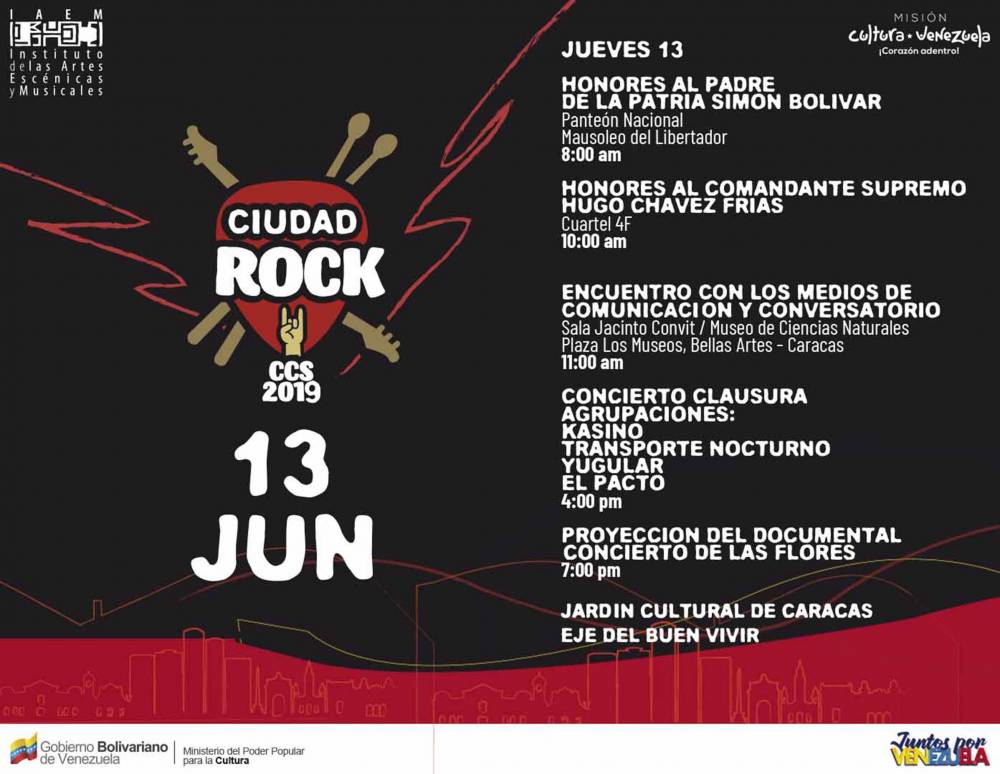 Este jueves 13 de junio como parte de la segunda edición de Ciudad Rock Caracas 2019 se realizará por primera vez la celebración del Día del Rock Nacional, a través de diversas actividades organizadas por el Instituto de las Artes Escénicas y Musicales (Iaem).