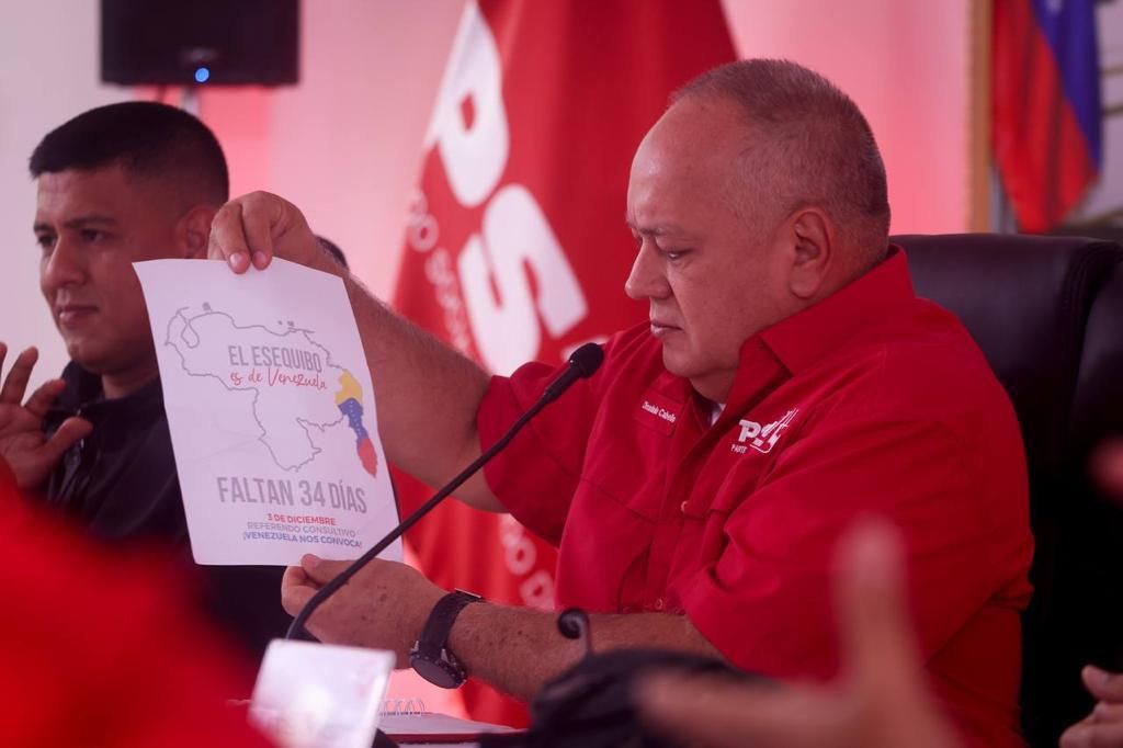 Este, 30 de octubre, el primer vicepresidente del Partido Socialista Unido de Venezuela (PSUV), Diosdado Cabello, aseguró que la tolda roja se prepara en todo el territorio nacional para el Referéndum Consultivo en Defensa de la Guayana Esequiba, el cual se realizará el próximo 3 de diciembre.