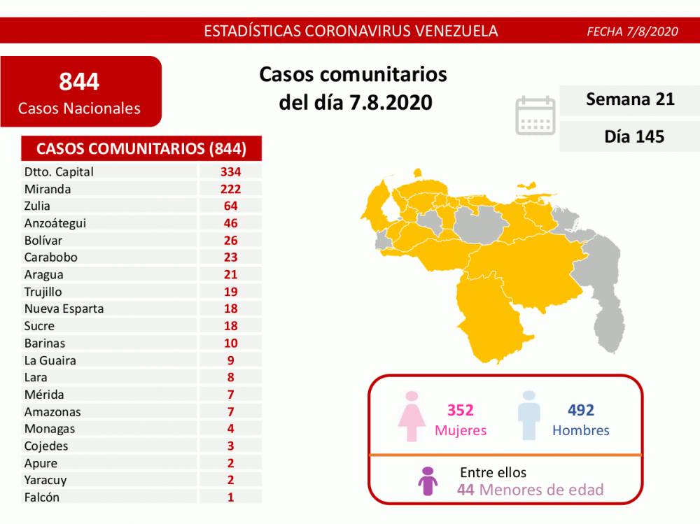 Este viernes Venezuela registró 844 nuevos casos de Covid-19 por transmisión comunitaria y 42 contagios en connacionales provenientes del exterior.