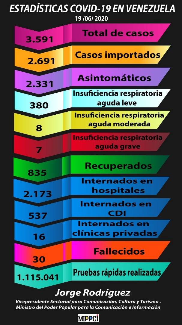 Venezuela reporta 106 nuevos casos de Covid-19 y dos fallecidos (+Total 3.591 y 30 fallecidos)
